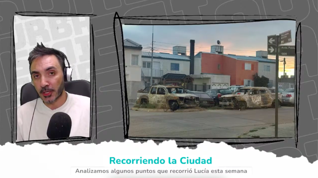 Una escena registrada a metros de la Seccional Quinta donde se observan vehículos abandonados y destruidos ocupando el boulevard de Av. Patricios. A partir de esa postal, Lucía presentó el tema e Iván profundizó el análisis, poniendo el foco en una práctica que se ha vuelto frecuente en distintos puntos de Comodoro: la acumulación de autos secuestrados en plena vía pública y el mensaje de abandono que eso transmite.