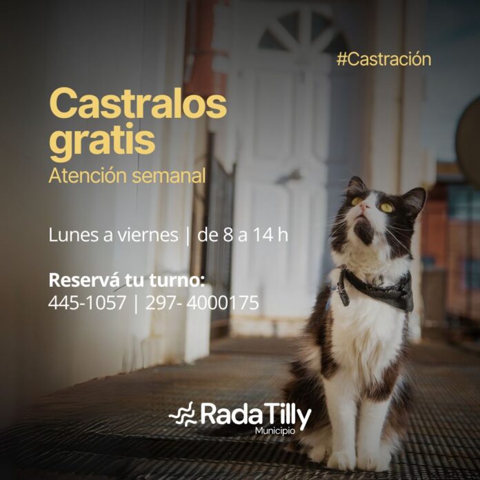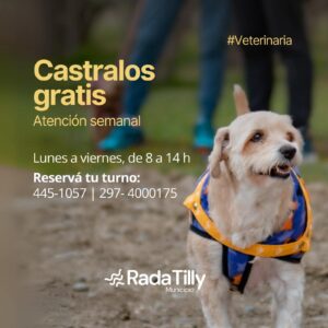 Tanto para los días de semana como para los días sábados, la próxima semana se estarán tomando turnos y se invita a la comunidad a comprometerse con la salud de sus perros y gatos, acercándose a la Dirección de Veterinaria, donde se ofrecen, de manera gratuita, servicios de castración, desparasitación y vacunación antirrábica. Como parte del programa “Cuidado Responsable de Perros y Gatos”, el municipio anima a los tutores a participar en la castración, vacunación y desparasitación de sus animales de compañía.